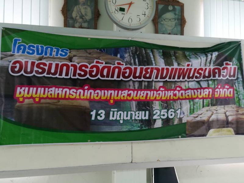 วันที่ 13 มิถุนายน 2561 กยท.สาขารัตภูมิ ได้จัดอบรม "การอัดก้อนยางแผ่นรมควัน” ให้กับสมาชิกของชุมนุมสหกรณ์กองทุนสวนยางจังหวัดสงขลา จำกัด ณ ห้องประชุม กยท.สาขารัตภูมิ จ. สงขลา มีผู้เข้าร่วมอบรมจำนวน 30 คน โดยมีวัตถุประสงค์เพื่อให้ความรู้เบื้องต้นเกี่ยวกับการผลิตยางแผ่นรมควันอัดก้อนมาตรฐาน GMP ในการเตรียมทำธุรกิจด้านการผลิตยางแผ่นรมควันอัดก้อนเพื่อเป็นทางเลือกในการเพิ่มมูลค่า และได้เชิญนางสายใจ วารี นักวิชาการเกษตร จากศูนย์บริการทดสอบรับรองภาคใต้ เป็นวิทยากรบบรรยายในครั้งนี้