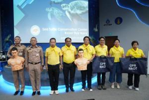 บ่อเต่าทะเล และปล่อยเต่าทะเลคืนสู่ธรรมชาติ เพื่อฟื้นฟูระบบนิเวศใต้ท้องทะเลอย่างยั่งยืน นอกจากนี้ ยังได้มอบหุ่นยางพาราฝึกการช่วยฟื้นคืนชีพ (CPR) ให้กับศูนย์อนุรักษ์พันธุ์เต่าทะเล โดยมี ว่าที่ นาวาเอก กฤษดา