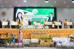 โอกาสนี้ กยท. ได้มอบปัจจัยน้ำหมักชีวภาพจากปลาหมอคางดำ จำนวน 200 ลิตร เป็นจำนวน 20,000 บาท รวมทั้งเงินอุดหนุนแก่สหกรณ์การเกษตรห้วยน้ำเย็น จำกัด จำนวน 291,000 บาท สหกรณ์การเกษตรสร้างนางขาว-ทุ่งหลวง จำกัด จำนวน 751,556 บาท สหกรณ์กองทุนสวนยางหนองบัวเงิน จำกัด จำนวน 776,000 บาท สหกรณ์การเกษตรโพธิ์ตาก จำกัด จำนวน 751,265 บาท และเงินอุดหนุนยกระดับตลาดยางพาราเพื่อบริการสมาชิก แก่สหกรณ์กองทุนสวนยางห้วยทรายคำ-บ้านผือ จำกัด จำนวน2,574,500 บาท รวมมูลค่าทั้งสิ้น 5,164,321 บาท