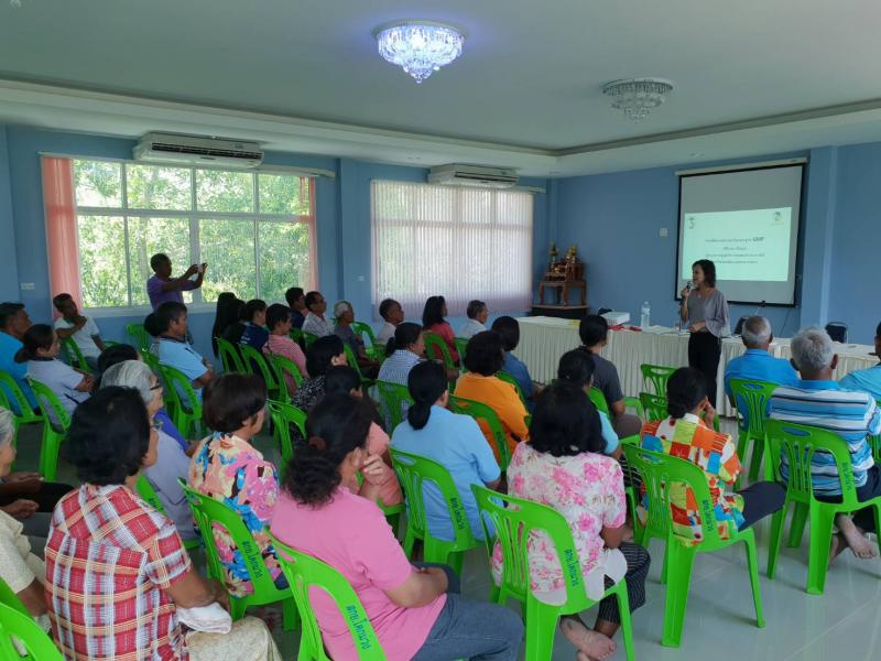บรรยายให้ความรู้ “การบริหารจัดการที่มีประสิทธิภาพสู่มาตรฐาน GMP” แก่สมาชิกสกย.ในเขตปฏิรูปที่ดินบ้านโคกม่วง จำกัด จ. พัทลุง (22/6/61)