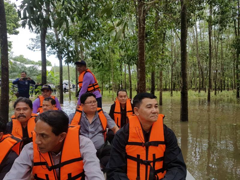 ผู้ว่าการ กยท. กล่าวเพิ่มเติมว่า การยางแห่งประเทศไทย เร่งลงพื้นที่เพื่อบรรเทาความเดือนร้อนให้แก่พี่น้องชาวสวนยางในเบื้องต้น 3 อำเภอ ได้แก่ อ.ควนขนุน อ.เขาชัยสน และ อ.ปากพยูน ประมาณ 500 ครัวเรือนที่ได้รับการช่วยเหลือในครั้งนี้ แต่อย่างไรก็ตาม ในเบื้องต้น กยท. มีมาตรการในการช่วยเหลือ โดยแบ่งมาตรการออกเป็น 3 ช่วง สำหรับช่วงระยะเร่งด่วนขณะนี้ได้สั่งการให้ กยท. จังหวัดเข้าช่วยบรรเทาความเดือนร้อนแก่เกษตรกรชาวสวนยางโดยการแจกถุงยังชีพ จากนั้นในระยะหลังจากที่น้ำลดลงแล้ว กยท. จะเข้าไปในพื้นที่เพื่อประเมินและตรวจสอบความเสียหาย โดยใช้เงินกองทุนของการยางแห่งประเทศไทยเพื่อช่วยเหลือเยียวยาให้เร็วที่สุด ส่วนในระยะยาวนั้น กยท. จังหวัดในทุกพื้นที่ที่ประสบอุทกภัยจะเข้าร่วมวางแผนเพื่อรับมือกับอุทกภัยที่อาจจะเกิดขึ้น อย่างไรก็ตาม การยางแห่งประเทศไทยได้มีการประสานงานกับเครือข่ายเกษตรกรชาวสวนยางและชาวบ้านในพื้นที่โดยวางแนวทางแก้ไขและรับมือกับการเกิดอุทกภัยเพื่อให้เกิดประโยชน์สูงสุด