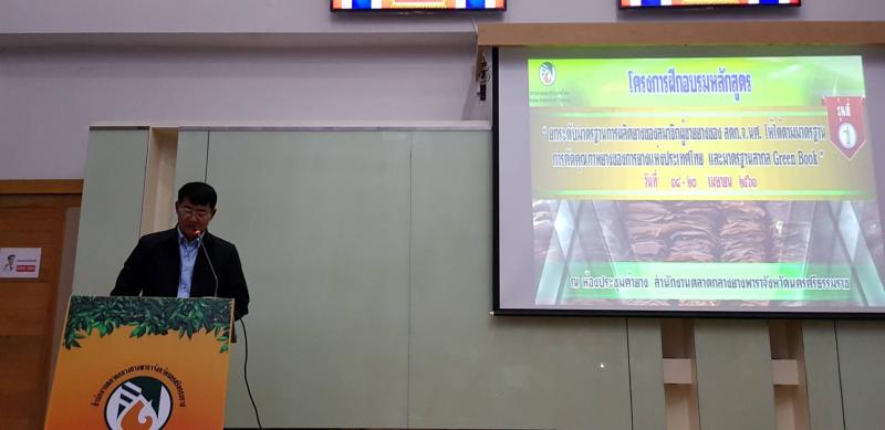 สำนักตลาดกลางยางพาราจังหวัดนครศรีธรรมราช ผอ. ชำนาญ ธนะภพ ได้จัดทำโครงการฝึกอบรมหลักสูตร ยกระดับมาตรฐานการผลิตยางของสมาชิกผู้ขายยางของสตก.นครศรีธรรมราช ให้ได้ตามมาตรฐานการคัดคุณภาพของการยางแห่งประเทศไทยและมาตรฐาน สากล The Green Book รุ่นที่ 1 ระหว่างวันที่ 18 – 20 เมษายน 2561 มีวัตถุประสงค์เพื่อเพิ่มพูนความรู้และประสิทธิภาพการแปรรูปยางให้กับเจ้าหน้าที่สตก.นค เกษตรกร และสถาบันเกษตรกรในจ.นครศรีธรรมราช มีผู้เข้ารับการอบรมจำนวนทั้งสิ้น 50 คน และได้เชิญนางปรีดิ์เปรม ทัศนกุล ผู้อำนวยการศูนย์บริการทดสอบรับรองภาคใต้ บรรยายพิเศษในหัวข้อ การพัฒนายกระดับการผลิตยางแผ่นรมควันมาตรฐาน GMP และมีนายวิรัตน์ สิทธิชัย ผอ.กยท.เขตภาคใต้ตอนกลาง เป็นประธานในพิธีการฝึกอบรมดังกล่าว