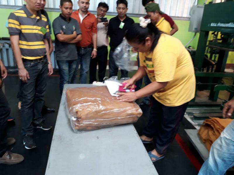 วันที่ 23 – 25 กรกฎาคม 2561 กองฝึกอบรม กยท. จัดทำโครงการอบรมเชิงปฎิบัติการหลักสูตร การผลิตยางแผ่นรมควันมาตรฐาน GMP ให้กับพนักงานกยท. จำนวน 42 คน ณ สถาบันเกษตรกร ในเขต จ. นครศรีธรรมราช และ จ. ตรัง โดยในวันที่สามของการฝึกอบรมได้ไปปฏิบัติการผลิตยางแผ่นรมควัน ณ สกย.คลองปาง จำกัด สกย. บ้านหนองศรีจันทร์ จำกัด และฝึกการผลิตยางอัดแท่ง ณ โรงอัดก้อนยางบ้านหนองศรีจันทร์ จำกัด เขต อ.รัษฎา จ. ตรัง โดยมีนางปรีดิ์เปรม ทัศนกุล ผู้อำนวยการศูนย์บริการทดสอบรับรองภาคใต้ และคณะ ร่วมเป็นวิทยากร ทำให้ผู้เข้ารับการอบรมได้มีทักษะ ประสบการณ์ในการฝึกปฏิบัติจริง และพร้อมที่จะทำหน้าที่เป็น auditor ในการควบคุมกระบวนการผลิตให้กับสถาบันเกษตรกรที่มีความพร้อมได้ต่อไป