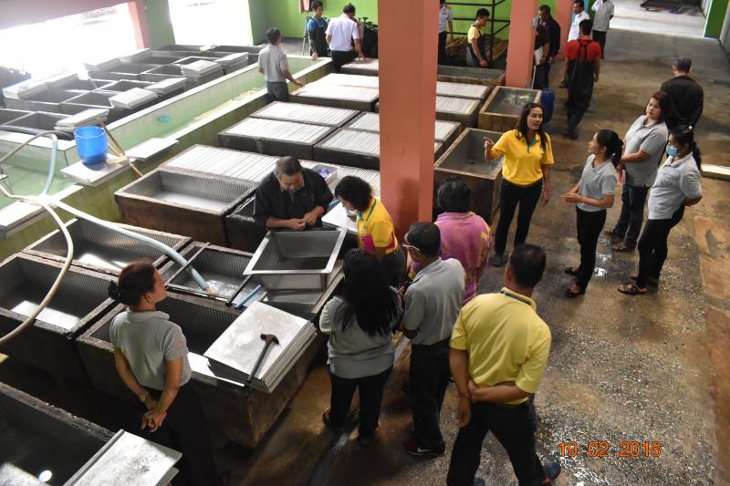 วันที่ 19 กุมภาพันธ์ 2561 ฝ่ายวิจัยและพัฒนาอุตสาหกรรมยางนำโดยนางณพรัตน์ วิชิตชลชัย และคณะกรรมการตรวจประเมินการผลิตยางตามมาตรฐาน GMP ลงพื้นที่ตรวจเยี่ยมโรงรมควันสหกรณ์กองทุนสวนยางบ้านเขาแดง จำกัด และจุดรวบรวมน้ำยางสดกลุ่มชาวสวนยางสกย.บ้านทับหลวง อ. สะบ้าย้อย จ. สงขลา เพื่อแนะนำการปรับปรุงกระบวนการให้เข้าสามารถสู่มาตรฐาน GMP โดยคาดว่าจะสามารถประเมินเพื่อรับรองมาตรฐานได้ราวต้นเดือนพฤษภาคม นี้