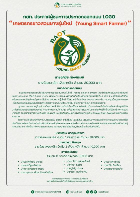 ประกาศผลผู้ชนะแล้ว !! กยท. ปั้น LOGO ‘Young Smart Farmer’ ชู อัตลักษณ์เกษตรกรชาวสวนยางรุ่นใหม่