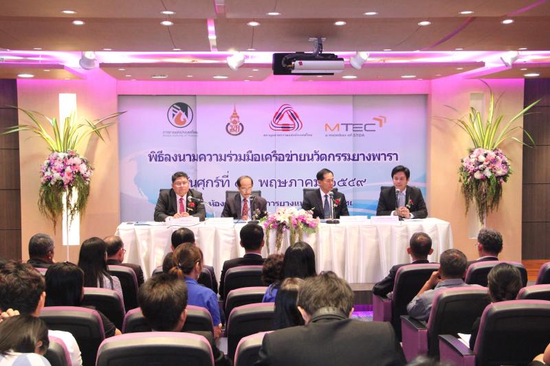 วันนี้ (13 พฤษภาคม 2559) การยางแห่งประเทศไทย (กยท.) โดย ดร.ธีธัช สุขสะอาด ผู้ว่าการ กยท. ร่วมลงนาม บันทึกข้อตกลงความร่วมมือ "เครือข่ายนวัตกรรมยางพารา ร่วมกับ 3 องค์กร ประกอบด้วยมหาวิทยาลัยสงขลานครินทร์ (ม.อ.) สภาอุตสาหกรรมแห่งชาติ (ส.อ.ท.) และสำนักงานพัฒนาวิทยาศาสตร์และเทคโนโลยีแห่งชาติ โดยศูนย์เทคโนโลยีโลหะและวัสดุแห่งชาติ (ศว.พว.) ณ ห้องราชไมตรี ชั้น 4 อาคาร 50 ปี การยางแห่งประเทศไทย กรุงเทพฯ โดยความร่วมมือในครั้งนี้จะก่อให้เกิดความเชื่อมโยงในรูปแบบของเครือข่ายระหว่างภาคเกษตรกรรม ภาคอุตสาหกรรม ภาคราชการ และภาคการศึกษา ซึ่งเป็นภาคส่วนหลักที่มีบทบาทในการพัฒนายางพาราและสร้างขีดความสามารถในการแข่งขันของประเทศไทย ทั้งด้านเศรษฐกิจ-สังคม ด้านวิทยาศาสตร์-เทคโนโลยี และด้านบุคคล
