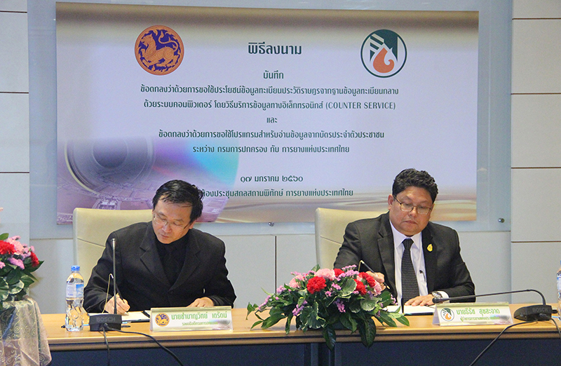 วันนี้ (17 มกราคม 2560) การยางแห่งประเทศไทย (กยท.) โดย ดร.ธีธัช สุขสะอาด ผู้ว่าการ กยท. และ สำนักทะเบียนกลาง กรมการปกครอง ร่วมลงนามบันทึกข้อตกลงความร่วมมือว่าด้วยการขอใช้ประโยชน์ข้อมูลทะเบียนประวัติราษฎรจากฐานข้อมูลทะเบียนกลางด้วยระบบคอมพิวเตอร์โดยวิธีบริการข้อมูลทางอิเล็กทรอนิกส์ (COUNTER SERVICE) และการขอใช้โปรแกรมสำหรับสำหรับอ่านข้อมูลจากบัตรประจำตัวประชาชน เพื่อนำมาใช้ในการตรวจสอบความถูกต้องและยืนยันตัวบุคคลในระบบการขึ้นทะเบียนเกษตรกรของการยางแห่งประเทศไทย ทั้งเกษตรกรชาวสวนยาง ผู้แทนสถาบันเกษตรกรและผู้ประกอบกิจการยาง ณ ห้องประชุมสถลสถานพิทักษ์ การยางแห่งประเทศไทย กรุงเทพฯ