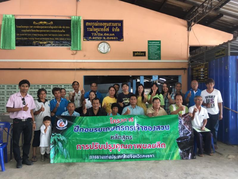 วันที่ 24 มกราคม 2561 กยท.จังหวัดสงขลา ได้จัดทำโครงการอบรมเกษตรกรชาวสวนยางหลักสูตรการปรับปรุงคุณภาพผลผลิต ณ สกย.รวมใจคูนายสังข์ จำกัด ม.6 ต.แค อ.จะนะ จ.สงขลา มีผู้เข้าอบรมจำนวน 30 คน วัตถุประสงค์ให้สมาชิกเข้าใจในการผลิตยางแผ่นรมควันมาตรฐาน GMP โดยมี ผอ.กยท.สาขาจะนะ นาย ทวีศักดิ์ สงคง เป็นประธานในพิธีเปิด และได้เชิญนายไมตรี มีทอง จากศูนย์บริการทดสอบรับรองภาคใต้ เป็นวิทยากร ให้ความรู้เป็นรุ่นที่ 15 จากจำนวน 30 รุ่น ทำให้สมาชิกมีความเข้าใจในการปรับปรุงระบบมาตรฐานGMP โดยจะปฏิบัติตามข้อกำหนดตามที่วิทยากรได้ให้ความรู้ไว้