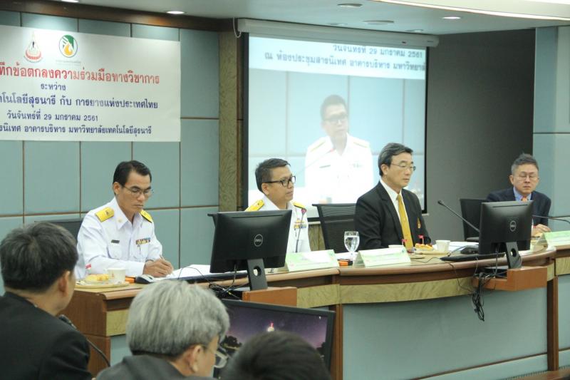 เมื่อเร็วๆนี้ การยางแห่งประเทศไทย ได้มีการลงนามบันทึกข้อตกลงความร่วมมือทางวิชาการกับมหาวิทยาลัยเทคโนโลยีสุรนารี โดยมีตัวแทนคือ นายสุนันท์ นวลพรหมสกุล รองผู้ว่าการการยางแห่งประเทศไทยด้านบริหาร ว่าที่ร้อยตรี วีรชัย ศรีสาร ผู้อำนวยการการยางแห่งประเทศไทย จังหวัดนครราชสีมา และรองศาสตราจารย์ ดร.วีระพงษ์ แพสุวรรณ อธิการบดีมหาวิทยาลัยเทคโนโลยีสุรนารี เป็นตัวแทนของทั้ง 2 หน่วยงานร่วมลงนามบันทึกข้อตกลงในครั้งนี้ โดยมีวัตถุประสงค์ร่วมกันในการศึกษาค้นคว้าวิจัย และถ่ายทอดเทคโนโลยีให้แก่เกษตรกรผู้ทำสวนยาง สถาบันเกษตรกร และผู้ประกอบธุรกิจที่เกี่ยวข้องกับยางพาราและผลิตภัณฑ์ทั้งระบบ เพื่อให้สามารถแก้ปัญหาราคายางพาราและรายได้เกษตรกรที่ผันผวนในปัจจุบัน ซึ่งในการจัดพิธีลงนามในครั้งนี้มีผู้บริหารจากทั้งสองฝ่ายร่วมเป็นสักขีพยาน โดยจัดขึ้น ณ ห้องประชุมสารนิเทศ อาคารบริหาร มหาวิทยาลัยเทคโนโลยีสุรนารี