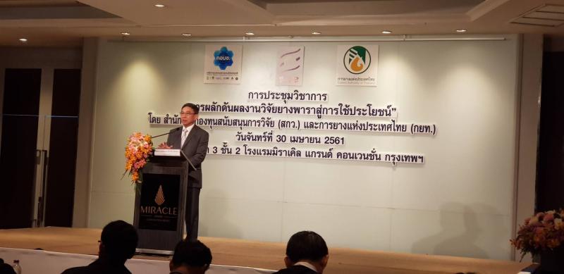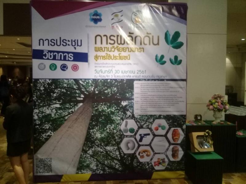 วันที่ 30 เมษายน 2561 สถาบันวิจัยยาง การยางแห่งประเทศไทย (กยท.) ร่วมกับสำนักงานกองทุนสนับสนุนงานวิจัย (สกว.) ได้จัดประชุมวิชาการ การผลักดันผลงานวิจัยยางพาราสู่การใช้ประโยชน์ ณ โรงแรมมิราเคิล แกรนด์ คอนเวนชั่น กรุงเทพมหานคร เพื่อเป็นการผลักดันงานวิจัยให้สามารถนำไปใช้ประโยชน์ได้จริง โดยผู้เข้าร่วมประชุมประกอบด้วยนักวิจัย นักวิชาการ อาจารย์มหาวิทยาลัย สถาบันวิจัยยาง สมาคมต่าง ๆ รวมทั้งสถาบันเกษตรกรและผู้ประกอบกิจการยาง รวมจำนวนทั้งสิ้น 200 คน