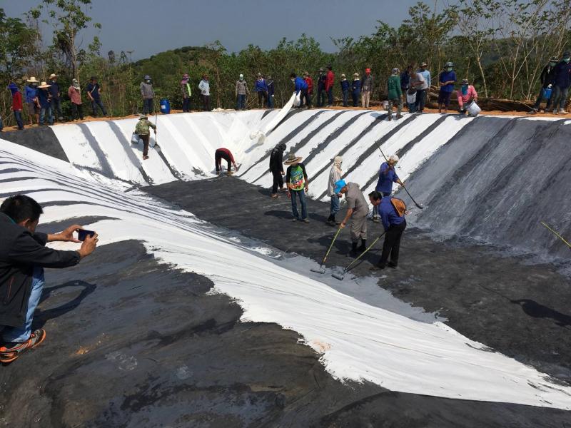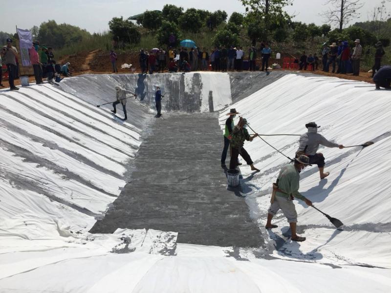 นายสาย อิ่นคำ กรรมการการยางแห่งประเทศไทย ในฐานะอนุกรรมการแสดงความรับผิดชอบต่อสังคมของ กยท. เผยว่า การสร้างต้นแบบการจัดวางระบบเครือข่ายและพัฒนาแหล่งน้ำผิวดินขนาดเล็กบนที่สูง ในพื้นที่ อ.ภูเพียง จ.น่าน เป็นการเพิ่มแหล่งกักเก็บน้ำให้แก่คนในชุมชนได้ใช้ในช่วงฤดูแล้ง โดยการสร้างบ่อเก็บน้ำ ด้วยการขุดดินตามขนาดแล้วขึ้นโครงโดยการใช้ผ้าดิบปูพื้นบ่อ จากนั้นเคลือบด้วยน้ำยางสดผสมสารเคมี ตามวิธีของ ผศ.ดร.อดิศัย รุ่งวิชานิวัฒน์ นักวิจัย สวก. มหาวิทยาลัยสงขลานครินทร์ วิทยาเขตปัตตานี ซึ่งสามารถเก็บกักน้ำโดยไม่รั่วซึมได้มากกว่า 10 ปีโครงการนำร่องการใช้ยางพาราเคลือบผ้าดิบปูพื้นบ่อ จะมีประโยชน์กับเกษตรกรและชุมชนอย่างแท้จริง และเป็นกิจกรรมที่เกิดจากความร่วมมือระหว่างหน่วยงานภาครัฐ หน่วยงานที่เกี่ยวข้อง รวมถึงผู้อาศัยในชุมชนที่เข้ามาบูรณาการร่วมกัน