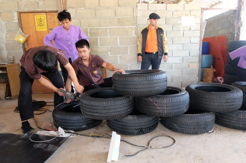 นายเสนีย์ กล่าวเพิ่มเติมว่า กิจกรรมสร้างฝายในครั้งนี้ ได้รับความร่วมมือจากบริษัท สยามมิชลิน จำกัด สนับสนุนล้อยางรถยนต์เป็นวัสดุหลักในการสร้างฝาย และ กยท. ได้สนับสนุนแผ่นยาง ขนาด 1.4x4 ม. หนา 5 มม. จำนวน 1 แผ่น ซึ่งมีส่วนประกอบของยางธรรมชาติ(ยางแผ่นรมควันชั้น 3) จำนวน 18 กก. ใช้ในการยึดติดกับล้อยางที่เชื่อมด้วยสลิง เพื่อช่วยกักน้ำไม่ให้ไหลผ่านช่องว่างของล้อยาง ซึ่งนวัตกรรมฝ่ายชะลอน้ำจากล้อยางได้รับการถ่ายทอดองค์ความรู้จากวิทยาลัยเทคนิคเชียงราย จึงถือเป็นการบูรณาการร่วมกันระหว่างภาครัฐ เอกชน สถานศึกษา ตลอดจนผู้อาศัยในชุมชนที่มาร่วมแรงร่วมใจกันสร้างฝายแห่งนี้ขึ้น นอกจากนี้ กยท. ได้นำผ้าห่มมามอบให้ชาวบ้านในชุมชน จำนวนทั้งสิ้น 72 หลังคาเรือน