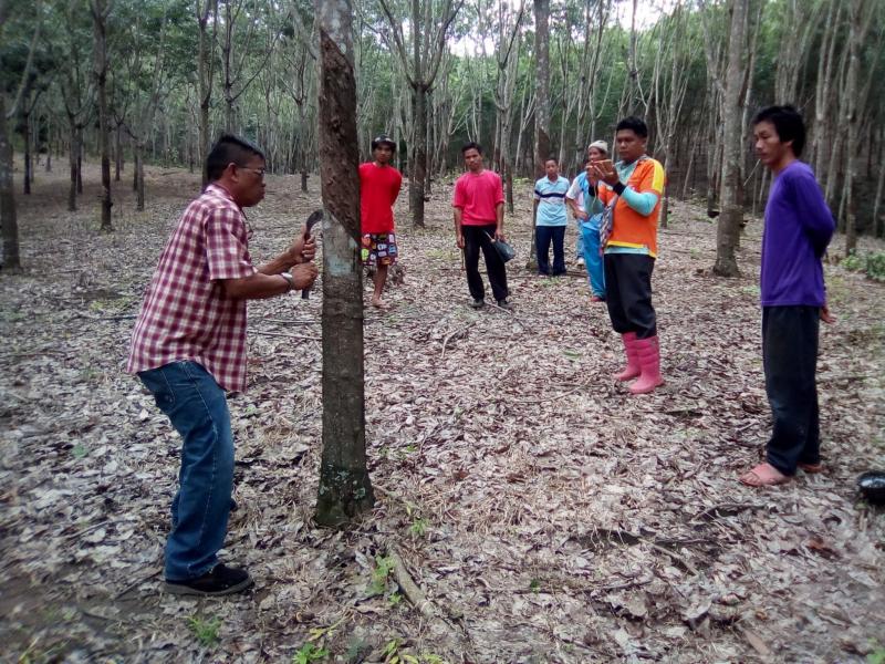 ตรวจติดตามให้การรับรองแปลงยางก้อนถ้วยมาตรฐาน GAP ให้กลุ่มวิสาหกิจชุมชนพัฒนาการทำสวนยางบ้านเทากลาง