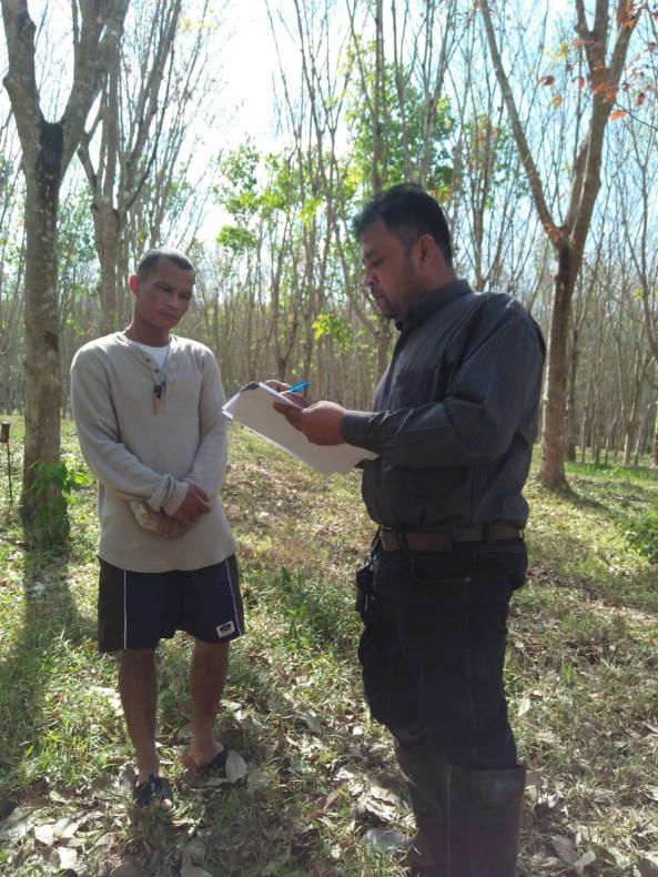 นายเอนก เทพี พนักงานการเกษตร 2 นางสมสิริ เหล็กเพ็ชร พนักงานการเกษตร 2 และนายสุเวทย์ ศิริ พนักงานการเกษตร 2 สำนักงานตลาดกลางยางพาราจังหวัดนครศรีธรรมราช ลงพื้นที่กองจัดการสวนยาง 1 การยางแห่งประเทศไทยเขตภาคใต้ตอนกลาง เพื่อเตรียมรับกับการจัดทำหลักปฏิบัติที่ดีสำหรับสวนยางมาตรฐาน GAP โดยมี นายก้องเกียรติ อำลอย นักวิชาการเกษตร 3 กองจัดการสวนยาง 1 ให้การสนับสนุนประสานงานพื้นที่สวนยางกองจัดการสวน 1กองจัดการสวน 1 หมู่ 4 โกโก้ จำนวน 20 แปลง พันธุ์ RRIM 600 พื้นที่ 240 ไร่ จากการตรวจสวนการจัดการแปลงกรีดยาง พบว่าไม่ชักร่องเส้นหน้าหลัง มุมกรีดไม่ตามคำแนะนำ กรีดหนา กรีดบาด กรีดลึกถึงเนื้อไม้ ถ้วยรองรับน้ำยางไม่สะอาด ไม่กรองน้ำยางในสวน ภาชนะรวบรวมน้ำยางไม่สะอาด จากการแนะนำคนงานกรีดพร้อมที่จะปรับแก้ไขตามข้อแนะนำ เพื่อตั้งเป้าหมายจัดทำหลักปฏิบัติที่ดีสำหรับสวนยางพารามาตรฐาน GAP กองจัดการสวนยาง 1 การยางแห่งประเทศไทยเขตภาคใต้ตอนกลาง จำนวน 3,000ไร่ ในการเพิ่มผลผลิตที่ได้คุณภาพ เพื่อยกระดับการจัดการแปลงกรีดการจัดการน้ำยางสวนยางพารามาตรฐาน GAP ต่อไป