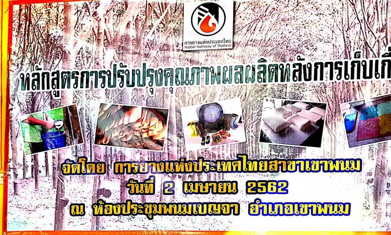 กยท.สาขาเขาพนม จัดโครงการฝึกอบรมเกษตรกรชาวสวนยาง หลักสูตร การปรับปรุงคุณภาพผลผลิตหลังการเก็บเกี่ยว (2/4/62)
