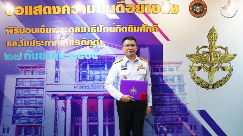 รอง บ. รับมอบเข็มพระดุลยาธิปัตย์กิตติมศักดิ์ จากกรมพระธรรมนูญสัญลักษณ์ของความวิริยะ อุตสาหะ ซื่อสัตย์ และสุจริต