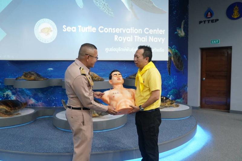 บ่อเต่าทะเล และปล่อยเต่าทะเลคืนสู่ธรรมชาติ เพื่อฟื้นฟูระบบนิเวศใต้ท้องทะเลอย่างยั่งยืน นอกจากนี้ ยังได้มอบหุ่นยางพาราฝึกการช่วยฟื้นคืนชีพ (CPR) ให้กับศูนย์อนุรักษ์พันธุ์เต่าทะเล โดยมี ว่าที่ นาวาเอก กฤษดา