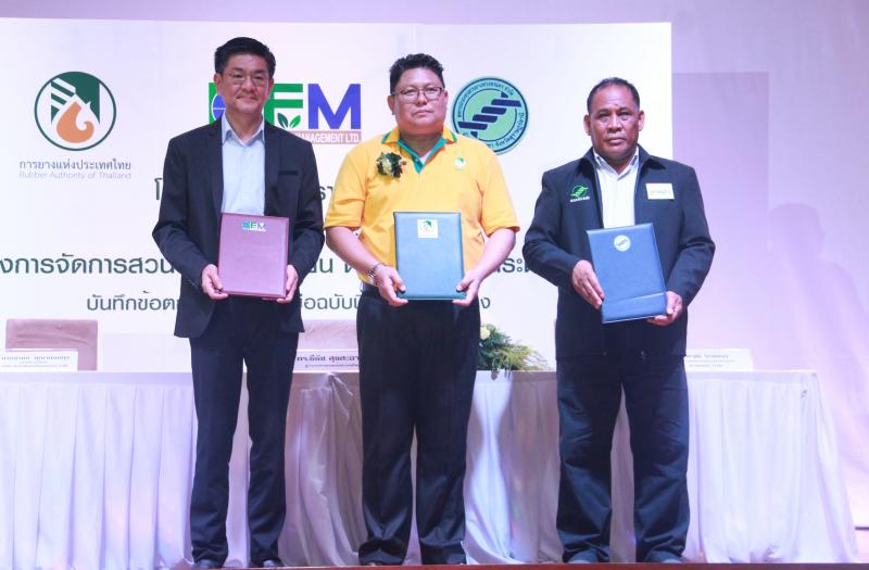 ดร.ธีธัช สุขสะอาด ผู้ว่าการการยางแห่งประเทศไทย เปิดเผยว่า เมื่อเร็วๆ นี้ การยางแห่ง ประเทศไทย(กยท.) ได้มีการลงนามบันทึกข้อตกลงความร่วมมือ(MOU) "โครงการจัดการสวนยางอย่างยั่งยืน ตามมาตรฐานในระดับสากล ระหว่าง กยท. ตัวแทนภาครัฐ บริษัท สยามฟอเรสแมเนจเม้นท์ จำกัด ตัวแทนภาคเอกชน และสหกรณ์กองทุนสวนยางพ่วงพรมคร จำกัด ตัวแทนภาคเกษตรกร โดยบันทึกข้อตกลง ความร่วมมือดังกล่าว เป็นการดำเนินการภายใต้โครงการยางพาราประชารัฐเพื่อพัฒนา และสร้างเกณฑ์การจัด สวนยางอย่างยั่งยืน ตามมาตรฐานในระดับสากล เช่น มาตรฐาน FSC โดยการมีส่วนร่วมของเกษตรกรชาวสวนยาง เพื่อเพิ่มมูลค่าไม้ยางพาราให้กับเกษตรกรชาวสวนยางทั่วประเทศ ด้วยการใช้ไม้ยางพารา และเป็นผลิตภัณฑ์จาก ไม้ยางพาราจำหน่ายทั้งในประเทศ และต่างประเทศ รวมถึงพัฒนาธุรกิจอุตสาหกรรมไม้ยางพารา และผลิตภัณฑ์จากไม้ยางพาราอย่างครบวงจร โดยคำนึงถึงการอนุรักษ์ฟื้นฟูทรัพยากรธรรมชาติ และสิ่งแวดล้อม
