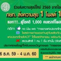 ดร.ธีธัช สุขสะอาด ผู้ว่าการการยางแห่งประเทศไทย กล่าวเพิ่มเติมว่า กยท. ร่วมกับ กระทรวงเกษตรและสหกรณ์ จัดกิจกรรม "กยท. ส่งความสุข 1 โพสต์ 1 ผลิตภัณฑ์ ปันยิ้ม” เพื่อส่งความสุขปีใหม่ 2560 ให้แก่เกษตรกรและประชาชน โดยผู้สนใจสามารถเข้าร่วมกิจกรรม ตามกติกา ดังนี้ 1.กด Like เพจการยางแห่งประเทศไทยRAOT 2. ถ่ายภาพตัวบุคคลพร้อมผลิตภัณฑ์จากยางพาราที่ชื่นชอบ 3. โพสต์ภาพถ่ายของท่านใต้ภาพกิจกรรม "กยท. ส่งความสุข 1 โพสต์ 1 ผลิตภัณฑ์ ปันยิ้ม” หน้าแฟนเพจ "การยางแห่งประเทศไทยRAOT” พร้อมระบุชื่อ ที่อยู่ และจังหวัด เพื่อลุ้นรับหมอนยางพารา ซึ่งเป็นผลิตภัณฑ์จากยางพารา คุณภาพดี ระหว่างวันที่ 26 ธันวาคม 2559 – 4 มกราคม 2560 นี้ ทั้งนี้ กยท. จะประกาศรายชื่อผู้โชคดีที่ได้รับหมอนยางพารา ซึ่งเป็นผู้ที่ร่วมกิจกรรมโพสต์ตามเงื่อนไขและกติกาที่กำหนดไว้ 1,000 คนแรกหน้าแฟนเพจ ในวันที่ 6 มกราคม 2560 หลังจากประกาศรายชื่อ ผู้โชคดีสามารถยืนยันสิทธิด้วยการแจ้งชื่อ นามสกุล ที่อยู่และเบอร์โทรศัพท์ใน Inbox แฟนเพจ เพื่อให้ กยท. จัดส่งของขวัญให้ทางไปรษณีย์