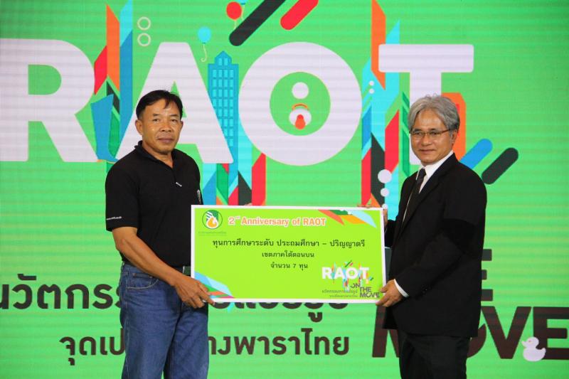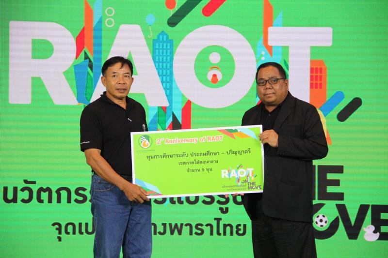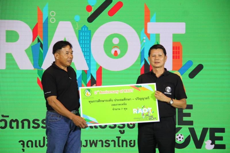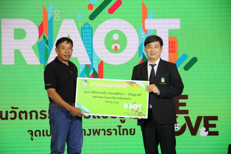 การยางแห่งประเทศไทย (กยท.) จัดพิธีมอบทุนการศึกษา ภายในงานวันสถาปนา กยท. ก้าวสู่ปีที่ 3 RAOT on The Move หนึ่งในกิจกรรมเพื่อแสดงความรับผิดชอบต่อสังคมของการยางแห่งประเทศไทย คัดเลือกบุตรของเกษตรกรชาวสวนยางจากทั่วประเทศ รวม 58 ทุน เป็นเงินกว่า 340,000 บาท โดย นายสาย อิ่นคำ กรรมการการยางแห่งประเทศไทย ในฐานะอนุกรรมการแสดงความรับผิดชอบต่อสังคมของ กยท. ให้เกียรติเป็นผู้มอบทุนการศึกษา ณ ห้างสรรพสินค้า Show DC พระราม 9