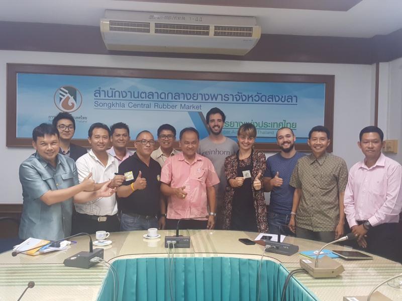 เมื่อเร็วๆ นี้ตัวแทนบริษัท Einhorn จำกัด บริษัทผลิตถุงยางอนามัยสัญชาติเยอรมัน เข้าหารือกับการยางแห่งประเทศไทยเขตภาคใต้ตอนล่าง หวังผลักดันผลผลิตน้ำยางสดของเกษตรกร สถาบันเกษตรกรชาวสวนยาง ส่งตรงถึงมือผู้ใช้ยางโซนยุโรป พร้อมหาแนวทางในการพัฒนาตลาดน้ำยางสดร่วมกัน ณ ตลาดกลางยางพารา อำเภอหาดใหญ่ จังหวัดสงขลา