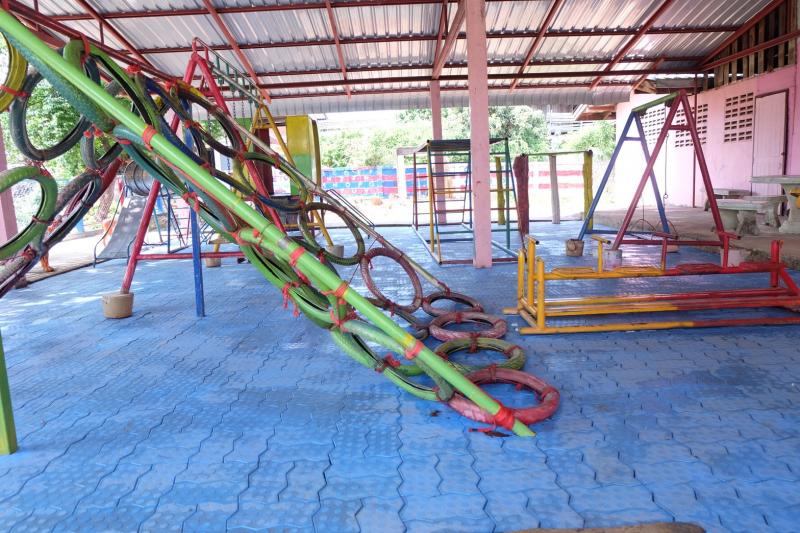 นายสาย อิ่นคำ กรรมการการยางแห่งประเทศไทย กล่าวว่า บล็อกยางพาราที่นำมาปูพื้นสนามเด็กเล่น เป็นงานวิจัยของฝ่ายวิจัยและพัฒนาอุตสาหกรรมยาง กยท. ผ่านมาตรฐานผลิตภัณฑ์อุตสาหกรรมบล็อกยางปูพื้น เลขที่ มอก.2378-2551 เป็นผลิตภัณฑ์ที่ผลิตจากยางธรรมชาติ ใช้เนื้อยางแห้ง 10 กิโลกรัม ต่อพื้นที่ 1 ตารางเมตร โดยแผ่นยางตัวหนอนปูสนาม1 แผ่น มีขนาด 24x12x1.2 เซนติเมตร สามารถปูพื้นได้ทั้งในร่มและกลางแจ้ง มีความยืดหยุ่นและสามารถรับแรงกระแทกได้เป็นอย่างดี จึงสามารถช่วยลดความรุนแรงของอุบัติเหตุที่อาจเกิดขึ้นกับเด็กที่ใช้เครื่องเล่นและผู้ทำกิจกรรมบนลานสนามเด็กเล่น โดย กยท. นำแผ่นยางตัวหนอนปูพื้นสนามเด็กเล่นของโรงเรียนบ้านแวนโค้ง บนพื้นที่ 80 ตารางเมตร และโรงเรียนบ้านทุ่งกล้วย บนพื้นที่ 75 ตารางเมตร