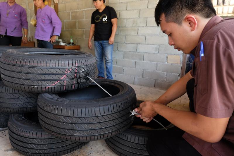 นายเสนีย์ จิตตเกษม กรรมการการยางแห่งประเทศไทย ในฐานะประธานอนุกรรมการแสดงความรับผิดชอบต่อสังคมของ กยท. เผยว่า การยางแห่งประเทศไทย (กยท.) เป็นองค์กรกลางรับผิดชอบดูแลการบริหารจัดการเกี่ยวกับยางพาราของประเทศทั้งระบบอย่างครบวงจร ได้ตระหนักและให้ความสำคัญในการดำเนินงานด้านการแสดงความรับผิดชอบต่อสังคม (CSR) โดยในปีนี้ได้จัดโครงการนวัตกรรมยางพาราเพื่อสังคม ซึ่งมุ่งเน้นการร่วมแก้ปัญหาในพื้นที่ชุมชน และช่วยเหลือสังคม โดยการใช้ผลิตภัณฑ์หรือนวัตกรรมจากยางพาราเพื่อสร้างประโยชน์ให้เกิดขึ้นแก่ผู้อาศัยและผู้มีส่วนได้ส่วนเสียโดยรอบชุมชนเหล่านั้น สำหรับกิจกรรมสร้างฝายชะลอน้ำจากล้อยาง มีเป้าหมายเพื่อแก้ปัญหาขาดแคลนแหล่งน้ำของชุมชนชาวลาหู่(มูเซอ) ในการอุปโภคบริโภคและทำการเกษตรในฤดูแล้ง หรือในสถานการณ์ฉุกเฉิน เช่น ระบบประปาภูเขาขัดข้อง ควบคู่ไปกับการส่งเสริมให้เกิดการเพิ่มปริมาณการใช้ยางพาราในประเทศด้วย