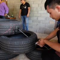 นายเสนีย์ กล่าวเพิ่มเติมว่า กิจกรรมสร้างฝายในครั้งนี้ ได้รับความร่วมมือจากบริษัท สยามมิชลิน จำกัด สนับสนุนล้อยางรถยนต์เป็นวัสดุหลักในการสร้างฝาย และ กยท. ได้สนับสนุนแผ่นยาง ขนาด 1.4x4 ม. หนา 5 มม. จำนวน 1 แผ่น ซึ่งมีส่วนประกอบของยางธรรมชาติ(ยางแผ่นรมควันชั้น 3) จำนวน 18 กก. ใช้ในการยึดติดกับล้อยางที่เชื่อมด้วยสลิง เพื่อช่วยกักน้ำไม่ให้ไหลผ่านช่องว่างของล้อยาง ซึ่งนวัตกรรมฝ่ายชะลอน้ำจากล้อยางได้รับการถ่ายทอดองค์ความรู้จากวิทยาลัยเทคนิคเชียงราย จึงถือเป็นการบูรณาการร่วมกันระหว่างภาครัฐ เอกชน สถานศึกษา ตลอดจนผู้อาศัยในชุมชนที่มาร่วมแรงร่วมใจกันสร้างฝายแห่งนี้ขึ้น นอกจากนี้ กยท. ได้นำผ้าห่มมามอบให้ชาวบ้านในชุมชน จำนวนทั้งสิ้น 72 หลังคาเรือน