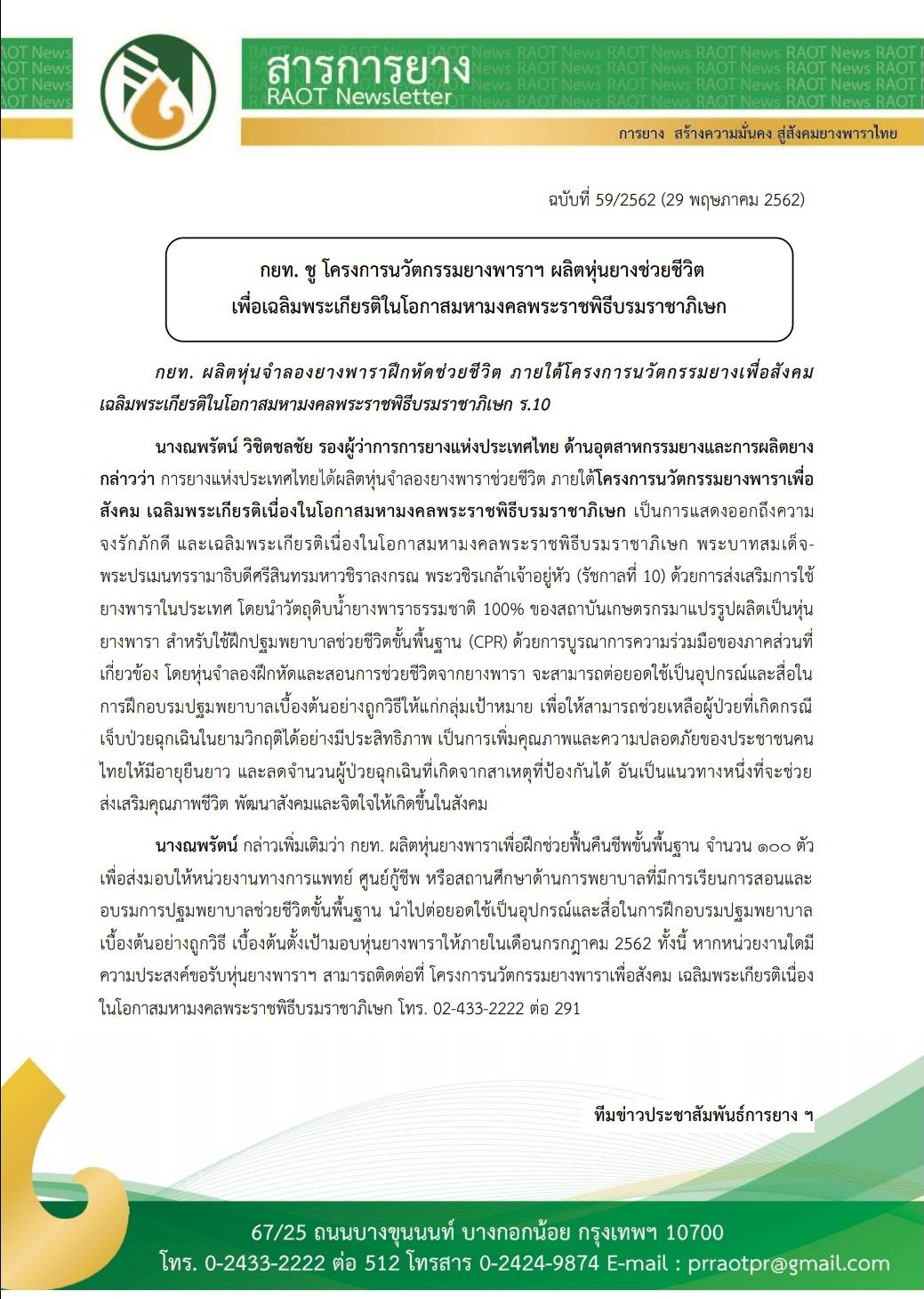 กยท. ชูนวัตกรรมยางพาราฯ ผลิตหุ่นยางช่วยชีวิต เฉลิมพระเกียรติในโอกาสมหามงคลราชพิธีบรมราชาภิเษก