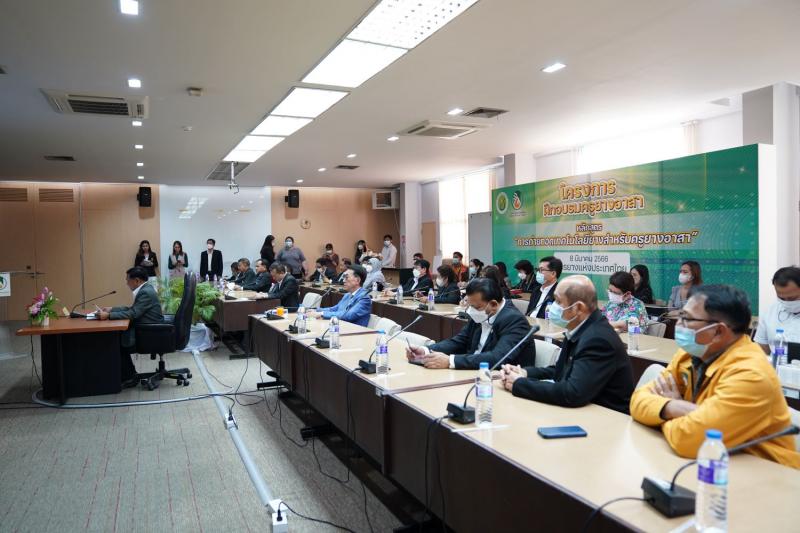 วันนี้ (8 มี.ค.66) การยางแห่งประเทศไทย (กยท.) จัดโครงการฝึกอบรมครูยางอาสากว่า 3,953 คน ผ่านระบบ Video Conference หลักสูตร "การถ่ายทอดเทคโนโลยียางสำหรับครูยางอาสา" โดยมีนายอลงกรณ์ พลบุตร ที่ปรึกษา รมว.กระทรวงเกษตรฯ ให้เกียรติเป็นประธานในพิธีเปิดโครงการฯ เน้นพัฒนาด้านวิชาการและเทคโนโลยีให้ครูยางส่งต่อความรู้ให้เกษตรกรชาวสวนยาง/บุคคลทั่วไปได้