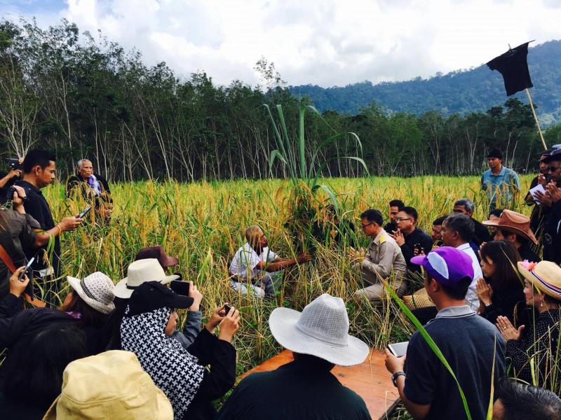 ด้าน นายสำราญ ขวัญนิมิต เกษตรกรชาวสวนยางที่ปลูกข้าวเป็นอาชีพเสริม จ.ตรังกล่าวว่าในขณะที่ต้นยางยังไม่สามารถให้ผลผลิตได้เนื่องจากยังไม่ถึงอายุกรีด การปลูกข้าวระหว่างร่องยางในพื้นที่ 7 ไร่ ผลผลิตที่ได้นอกเหนือจากการบริโภคในครัวเรือนแล้ว ยังสามารถนำไปจำหน่ายช่วยสร้างรายได้ให้กับครัวเรือนได้ดีในระดับหนึ่ง เป็นการดำเนินชีวิตตามแนวทางเศรษฐกิจพอเพียงที่ดี
