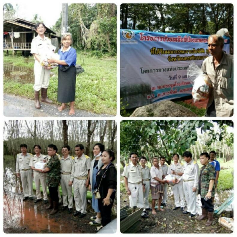 เมื่อวันที่ 9 ม.ค.60 การยางแห่งประเทศไทยเขตภาคใต้ตอนบน เขตภาคใต้ตอนกลาง เขตภาคใต้ตอนล่าง ปล่อยขบวนน้ำใจช่วยภัยน้ำท่วมภาคใต้ ลงพื้นที่แจกถุงยังชีพช่วยเหลือผู้ประสบภัยที่ได้รับความเดือดร้อน จากเหตุการณ์น้ำท่วม ซึ่งประกอบไปด้วย