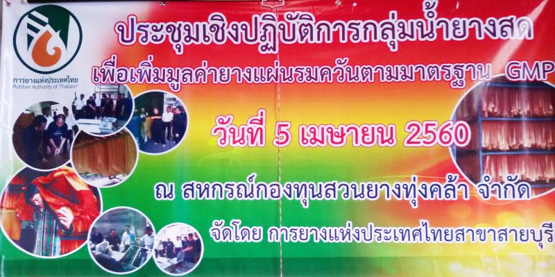 เมื่อวันที่ 5 เมษายน 2560 กยท.จ.ปัตตานี สาขาสายบุรี ได้เรียนเชิญอาจารย์ปรีดิ์เปรม ทัศนกุล ผู้อำนวยการศูนย์บริการทดสอบรับรองภาคใต้ พร้อมด้วยอาจารย์ไมตรี มีทอง ให้ความรู้ ความเข้าใจ ในการทำยางแผ่นรมควันให้กับคณะกรรมการจาก สกย.ทุ่งคล้า จำกัด สกย.โคกพันตัน จำกัด และสกย.ควนเปล จำกัด จ. ปัตตานี รวมจำนวน 30 คน หลักจากที่ได้รับความรู้ในหลักปฏิบัติตามมาตรฐาน GMP ทำให้ สกย. ทั้ง 3 แห่งพร้อมใจเข้าร่วมโครงการที่จะดำเนินการปรับปรุงระบบทั้งหมดในโรงงานเพื่อเข้าสู่มาตรฐาน ทั้งนี้คณะวิทยากรได้ลงพื้นที่และให้ข้อแนะนำให้ทำการปรับปรุงแก้ไขทั้งสิ้น 52 ข้อ โดยครอบคลุมสถานที่ประกอบการ อุปกรณ์เครื่องมือที่ใช้ในการผลิต ระบบบำบัดน้ำเสีย ให้สามารถใช้งานได้อย่างมีประสิทธิภาพ ซึ่งสกย. ทั้ง 3 แห่ง จะเป็นต้นแบบในจ. ปัตตานี ในการทำยางที่ได้คุณภาพมาตรฐานต่อไป