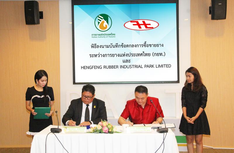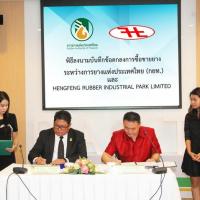 ดร.ธีธัช สุขสะอาด ผู้ว่าการการยางแห่งประเทศไทย กล่าวว่า หลังจากลงนามบันทึกช่วยจำ เมื่อครั้งที่ กยท.ไปดูงานที่ประเทศจีนในช่วงสองสัปดาห์ที่ผ่านมา และได้มีโอกาสได้ไปดูศักยภาพการผลิตของบริษัท เหินฟง รับเบอร์ อินดัสเทรียล จำกัด ซึ่งเป็นผู้ผลิตยางล้อรายใหญ่ 1 ใน 3 ของประเทศจีน ที่มีกำลังการผลิตจำนวนมาก เพราะมีความต้องการใช้ยางวันละประมาณ 30,000 ตัน เราจึงนำความต้องการนี้มาพิจารณาว่ากำลังการผลิตที่สามารถหาได้จะตอบโจทย์ความต้องการของบริษัท เหินฟง ได้มากน้อยเท่าไรได้บ้าง ณ วันนี้นับเป็นจุดเริ่มต้นของการซื้อขายยาง ซึ่งทางบริษัทฯ ได้ส่งผู้มีอำนาจลงนาม มาลงนามซื้อขายฉบับแรก โดยในสัญญาซื้อขายฉบับแรกนั้นได้แสดงความจำนงต้องการซื้อยางจากการยางแห่งประเทศไทยเดือนละ 5,040 ตัน ซึ่งจะเป็นยางประเภท STR 20 หรือยางคอมปาวน์ ตามมาตรฐานสากล โดย กยท. จะเป็นผู้รวบรวมยางจากพี่น้องเกษตรกรชาวสวนยางด้วยการซื้อผ่านทางสถาบันเกษตรกรชาวสวนยางที่ขึ้นทะเบียนกับ กยท. และคัดเลือกยางที่มีคุณภาพเหมาะสมตรงตามความต้องการ ทั้งนี้ จะเป็นการดูดซับเอายางจากฤดูกาลเปิดกรีดนี้ออกจากตลาดได้ประจำทุกเดือน ซึ่งเกษตรกรชาวสวนยาง หรือสถาบันเกษตรกรชาวสวนยางที่มีศักยภาพจะมีส่วนร่วมในการจำหน่ายวัตถุดิบในโครงการนี้ด้วย