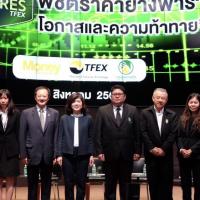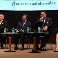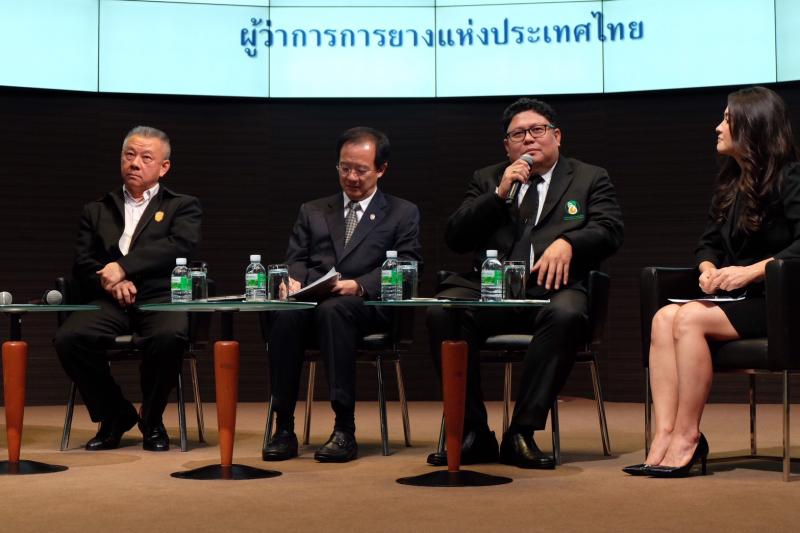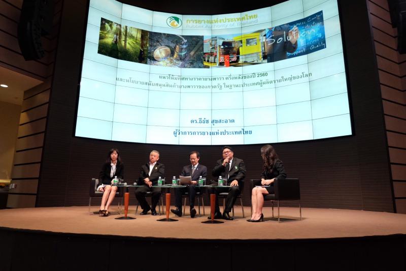 ดร. ธีธัช สุขสะอาด ผู้ว่าการการยางแห่งประเทศไทย เผยว่า ภาพรวมของการเสวนาในวันนี้ ได้นำเสนอผลการประชุมในระดับไตรภาคีให้ตลาดหลักทรัพย์แห่งประเทศไทยรวมถึงผู้เข้าร่วมงานรับทราบ ว่า 3 ประเทศผู้ส่งออกรายใหญ่ ได้แก่ ประเทศไทย มาเลเซีย และอินโดนีเซีย มองว่าปัจจัยพื้นฐานยางพาราในระยะยาวยังคงแข็งแกร่ง คือ มีความต้องการใช้ยางสูง ขณะเดียวกันปริมาณยางช่วงเวลานี้เมื่อเทียบกับช่วงเวลาเดียวกันของปีที่ผ่านมา มีปริมาณน้อยกว่า เนื่องจากประสบอุทกภัยน้ำท่วม ฝนตกหนัก ทั้งภาคอีสานและภาคใต้ ขณะที่ประเทศอินโดนีเซียประสบภาวะอากาศหนาวไม่สามารถกรีดยางได้ ปริมาณยางที่ออกมาสู่ตลาดจึงมีปริมาณค่อนข้างต่ำ ฉะนั้น เมื่อมองปัจจัย demand และ supply ประกอบกันแล้วยังเป็นบวก ประกอบประเทศจีนซึ่งเป็นประเทศผู้ซื้อยางรายใหญ่ มีปริมาณยางใน stock ลดลง อย่างชัดเจนกว่า 19% ในช่วงระยะเวลาเดือนกว่าๆ ที่ผ่านมา จึงทำให้จีนมีความต้องการนำเข้าผลผลิตยางเพิ่มขึ้นเช่นกัน