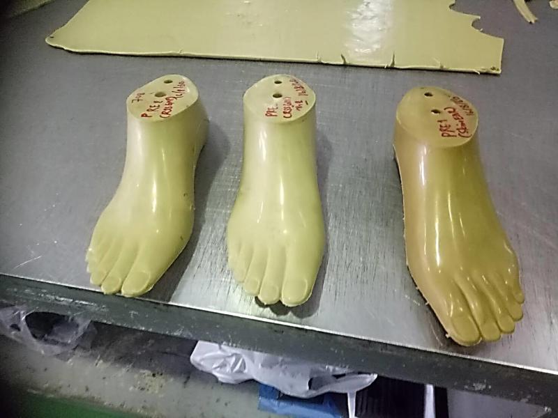 เท้าเทียมจากยางแผ่นรมควันมาตรฐาน GMP ยืดหยุ่นดี ลดข้อตำหนิที่เกิดจากการผลิต (16/08/60)
