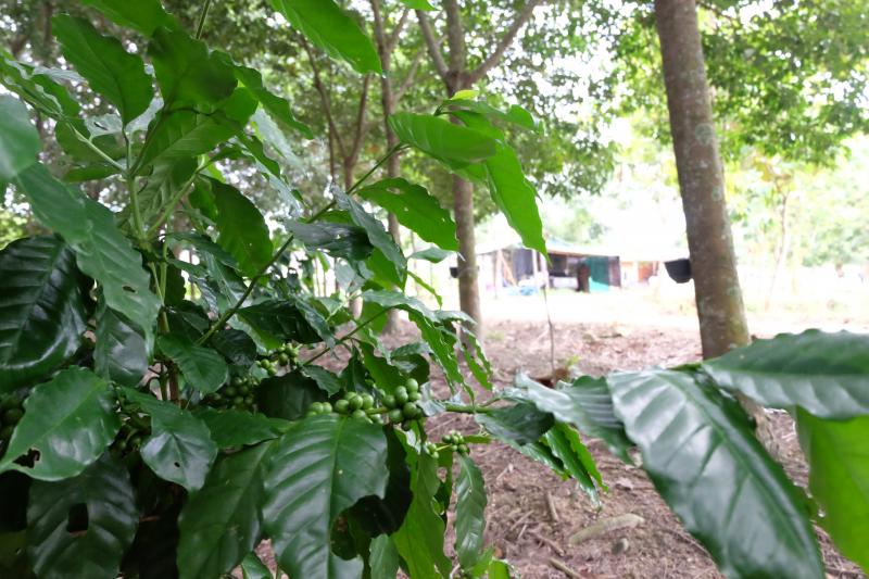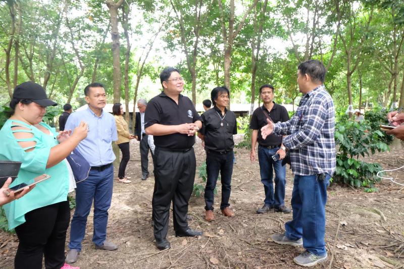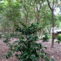 ด้านนายสมจิตร์ บรรณจักร์ เจ้าของสวนยางเกษตรผสมผสาน เผยว่า โดยส่วนตัวมีความสนใจในเรื่องการทำเกษตรมาตั้งแต่สมัยหนุ่ม จึงผันตนเองจากรับราชการมาสู่การเป็นเกษตรกรเต็มตัว ด้วยพื้นที่ 60 กว่าไร่ เริ่มต้นจากการปลูกพืชเชิงเดี่ยวเป็นสวนลิ้นจี่ มาจนถึงสวนส้ม แต่ประสบปัญหาจากราคาสินค้าเกษตรตกต่ำ และประกอบกับในช่วงปี 2547 2549 รัฐบาลมีโครงการปลูกยาง 1 ล้านไร่ จึงหันมาปลูกยางพารา โดยขอรับการสงเคราะห์ปลูกแทนด้วยยางพันธุ์ RRIM 600 จำนวน 2,000 กว่าต้น และซื้อเพิ่มด้วยทุนของตนเองอีกประมาณ 2,000 ต้นเช่นกัน คิดเป็นพื้นที่ปลูกยางพาราประมาณ 30 ไร่ และในคราวนี้จึงมีแนวคิดปรับเปลี่ยนเป็นการทำเกษตรผสมผสาน ปลูกต้นสัก มะม่วง และมีการเลี้ยงไก่ เลี้ยงปลา พร้อมการปลูกไม้ใต้ร่มยาง ซึ่งเลือกเป็นปลูกกาแฟสายพันธุ์อาราบิก้าเพิ่มเข้ามาด้วย เพราะได้ศึกษาแล้วพบว่าการปลูกพืชที่ให้ผลผลิตหมุนเวียนกันในรอบปี และการเลี้ยงสัตว์ควบคู่ไปด้วย เกิดผลที่ยั่งยืนกว่าการทำการเกษตรเชิงเดี่ยว