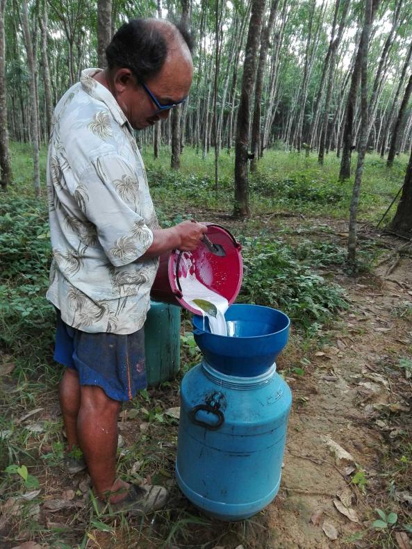 การรวบรวมน้ำยางสดจากสวน