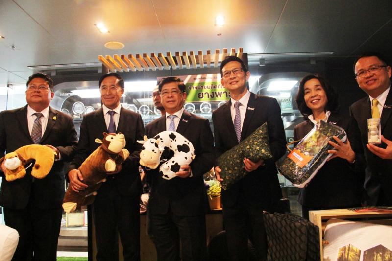 ด้าน นายอรรถพล ฤกษ์พิบูลย์ ประธานเจ้าหน้าที่ปฏิบัติการกลุ่มธุรกิจปิโตเลียมขั้นปลาย บริษัท ปตท. จำกัด (มหาชน) กล่าวว่า การเปิดพื้นที่ในสถานีบริการน้ำมัน ปตท. ทั่วประเทศ ให้เป็นศูนย์กลางของชุมชนได้นำสินค้าแปรรูปจากยางพาราเข้ามาจำหน่ายโดยไม่คิดค่าใช้จ่ายตลอดปี 2561 นี้ เป็นความร่วมมือกับ กยท. ที่จะช่วยพัฒนาและเพิ่มช่องทางการจำหน่ายสินค้าของเกษตรกรผู้ปลูกยางพาราได้อย่างมีประสิทธิภาพ ช่วยเพิ่มรายได้และลดรายจ่ายในการหาพื้นที่จำหน่ายให้แก่เกษตรกรชาวสวนยางได้อีกช่องทางหนึ่ง