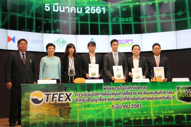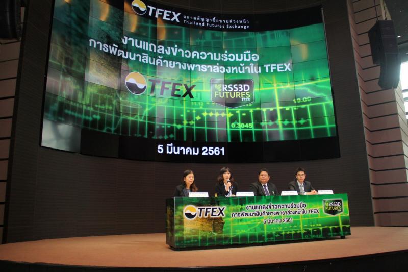 เมื่อวันที่ 5 มีนาคม 2561 การยางแห่งประเทศไทย (กยท.) ร่วมกับ บริษัท ตลาดสัญญาซื้อขายล่วงหน้า (ประเทศไทย) จำกัด (มหาชน) หรือ TFEX สมาคมยางพาราไทย และบริษัทหลักทรัพย์ ผู้ประกอบธุรกิจสัญญาซื้อขายล่วงหน้า ร่วมกันเดินหน้าพัฒนาและส่งเสริมการซื้อขายยางพาราผ่านตลาดล่วงหน้า เน้นการ เพิ่มปริมาณการซื้อขายภายในประเทศ ลดอุปสรรคในการลงทุน หวังเพิ่มโอกาสสร้างรายได้แก่เกษตรกรชาวสวนยาง และกำหนดราคาอ้างอิงที่เป็นธรรม
