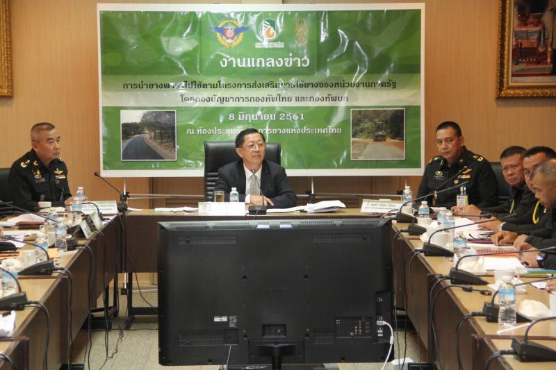 เมื่อวันที่ 8 มิถุนายน 2561 การยางแห่งประเทศไทยร่วมกับกระทรวงกลาโหม แถลงนำน้ำยางพารา กว่า 17,000 ตัน งบประมาณ 2,600 ล้านบาท พร้อมนำไปสร้างถนนพาราซอยล์ซีเมนต์ และสร้างบ่อน้ำปูพื้นยางพารา ตามแผนกิจกรรมของกระทรวงกลาโหมที่ดำเนินการอยู่ มั่นใจ ช่วยดูดซับยางพาราไปใช้ในหน่วยงานของรัฐ ตามนโยบายรัฐบาล