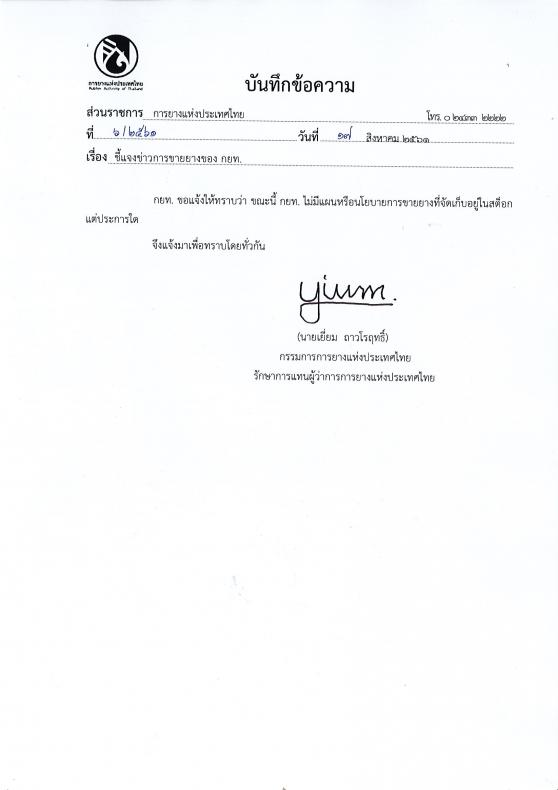 ชี้แจงข่าวการขายยางของ กยท.