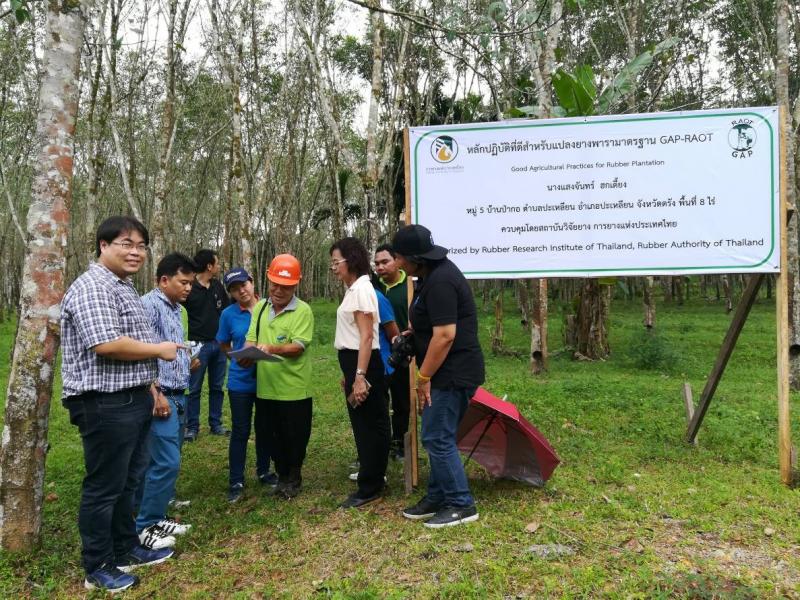 วันที่ 7 พฤศจิกายน 2561 สำนักงานมาตรฐานสินค้าเกษตรและอาหารแห่งชาติ (มกอช.) นำโดยนายประทีป อารยะกิตติพงศ์ นักวิชาการมาตรฐานชำนาญการ พร้อมคณะรวม 4 ท่าน เข้าเยี่ยมชมแปลงยางของเกษตรกรที่ได้รับมาตรฐาน GAP จากสถาบันวิจัยยาง การยางแห่งประเทศไทย ในเขต อ. ปะเหลียน จ. ตรัง ซึ่งมีเกษตรกรที่ผ่านมาตรฐาน GAP ไปแล้ว 7 ราย คิดเป็นพื้นที่ประมาณ 100 ไร่ เพื่อกำหนดแผนในการจัดทำมาตรฐาน เรื่องหลักปฏิบัติทางการเกษตรที่ดีสำหรับยางพารา การลงพื้นที่ในครั้งนี้ได้รับการต้อนรับจากนายสมยศ น้ำแก้ว ผอ.กยท.จ.ตรัง พร้อมกับผอ.กยท.สาขาเมือง ผอ.กยท.สาขาย่านตาขาว ผอ.กยท.สาขาห้วยยอด ผอ.กยท.สาขาปะเหลียน นายเสกสรรค์ กาฬสร ผอ.ส่งเสริมสหกรณ์สาขาประเหลียน ผู้แทนเกษตรกรสกย.ป่ากอ หนองหว้า โคกแต้ว ไร่ควน หนองเอื้อง สหกรณ์การเกษตรทุ่งยาว และคณะ GMP จากศูนย์บริการทดสอบรับรองภาคใต้