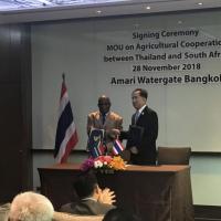 เมื่อเร็วๆ นี้ กระทรวงเกษตรและสหกรณ์ ต้อนรับ รมว.เกษตรฯ และคณะจากประเทศสาธารณรัฐแอฟริกาใต้ พร้อมเจรจาความร่วมมือด้านการเกษตร ตลอดจนลงนามบันทึกความเข้าใจระหว่างกระทรวงเกษตรและสหกรณ์ และกระทรวงเกษตรป่าไม้และการประมงแห่งสาธารณรัฐแอฟริกาใต้ โดยมี นายกฤษฎา บุญราช รัฐมนตรีว่าการกระทรวงเกษตรและสหกรณ์ ให้การต้อนรับ ณ โรงแรมอมารี กรุงเทพฯ