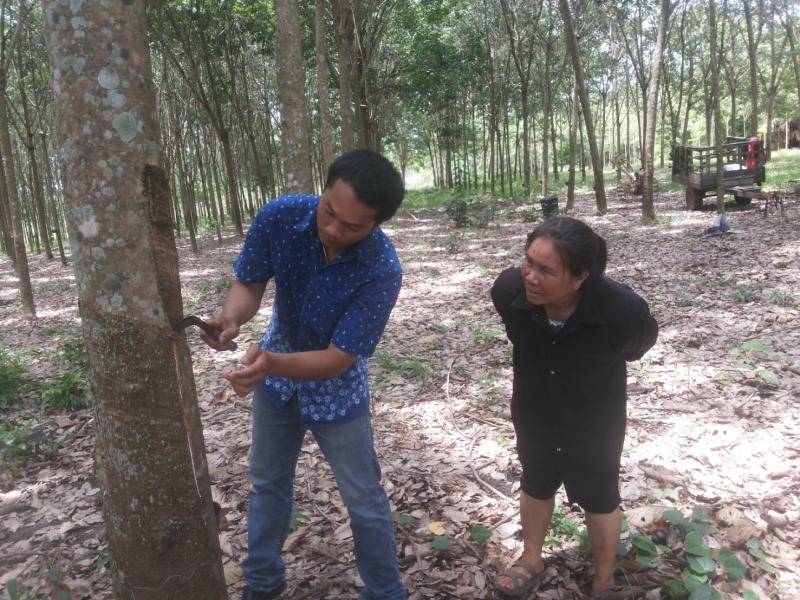 สำนักงานตลาดกลางยางพาราจังหวัดหนองคาย ลงพื้นที่ตรวจให้คำแนะนำการผลิตยางก้อนถ้วยตามมาตรฐาน GAP ให้กับกลุ่มดงผาลาดยางพารา ต.หนองแปน อ.เจริญศิลป์ จ.สกลนคร (22 ราย) กลุ่มตลาดยางคำแม่นาง-ดอนหอ ต.หนองซน อ.นาทม จ.นครพนม (23 ราย) และสหกรณ์การเกษตรบ้านแพง จำกัด ต.บ้านแพง อ.บ้านแพง จ.นครพนม(20 ราย) ปัญหาที่พบในสวนยางพารา คือ เกษตรกรไม่แบ่งเส้นหน้า-หลัง กรีดลึกจนถึงแก่น หน้ากรีดเสียหาย มุมกรีดไม่ได้ระดับ 30-35 องศา ส่วนการใช้สารจับตัวยางก้อนถ้วยพบว่าเกษตรกรส่วนใหญ่ใช้กรดฟอร์มิกตามคำแนะนำ แต่ยังมีเกษตรกรบางรายที่ยังผสมกรดไม่ถูกต้อง รวมถึงการใส่ปุ๋ยไม่ถูกสูตร เจ้าหน้าที่ควบคุมปฏิบัติงาน GAP ได้สาธิตและบรรยายตามข้อแนะนำเพื่อให้เกษตรกรปรับปรุงในสวนยางของตนเอง และรอการตรวจประเมินรับรองแปลงยางก้อนถ้วยมาตรฐาน GAP ต่อไป