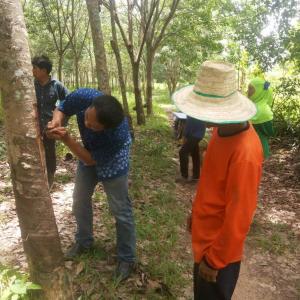 คณะ GAP ศูนย์บริการทดสอบรับรองภาคใต้ ลงพื้นที่ อ.นาหม่อม จ. สงขลา ให้คำแนะนำสวนยางพารา GAP (10/06/62)