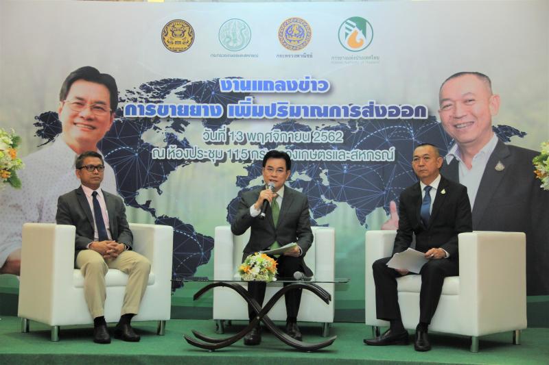 เกษตรฯ-พาณิชย์ ร่วมแถลงเจรจาขายยาง ซื้อขาย 260,480 ตัน พร้อมชู กยท. เพิ่มศักยภาพการแข่งขัน และเพิ่มอำนาจการต่อรองในเวทีโลก หวังช่วยบรรเทาความเดือดร้อนของเกษตรกรชาวสวนยาง สถาบันเกษตรกรชาวสวนยาง และผู้ประกอบกิจการยางพารา