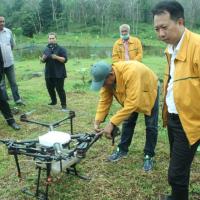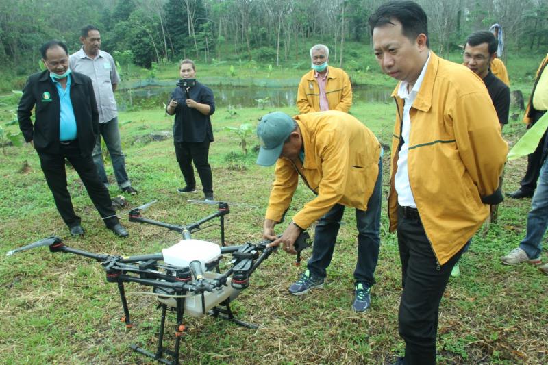 กยท. ลงพื้นที่ให้ความรู้และติดตามสถานการณ์โรคใบร่วงชนิดใหม่แก่พนักงาน กยท. เขตใต้ล่าง พร้อมนำร่องบินโดรน ทดสอบการใช้สารกำจัดเชื้อรายับยั้งโรคใบร่วง