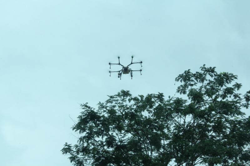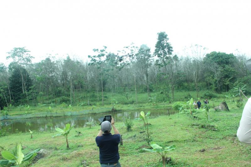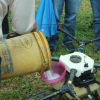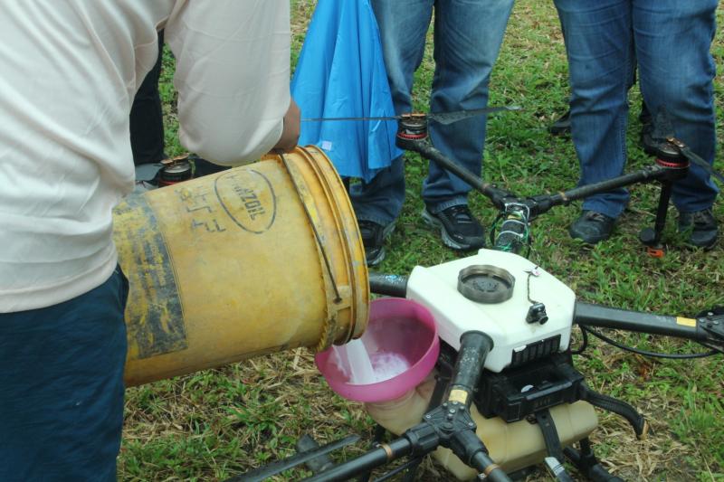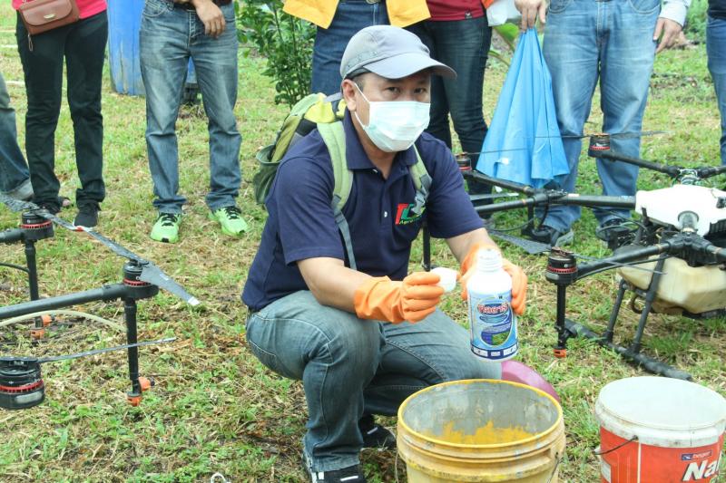 จากนั้น วันที่ 15 พฤศจิกายน 2562 เวลา 9.00 น. โดยประมาณ คณะผู้บริหารของ กยท. ได้ลงพื้นที่สวนยางพาราของ นายสุวิทย์ วัลลิโก เกษตรกรชาวสวนยางในตำบลฆอเลาะ อำเภอแว้ง จังหวัดนราธิวาส เพื่อทำการทดสอบการพ่นสารเคมีผ่านทางเครื่องอากาศยานไร้คนขับ หรือโดรน ซึ่งสามารถบรรจุสารเคมีขนาด 10 ลิตร โดยผสมสารกำจัดเชื้อรา โปรปิโคนาโซล + ไดฟีโนโคนาโซล ผสมกับน้ำและสารจับใบ บินพ่นยอดยางในพื้นที่เป้าหมายจำนวน 300 ไร่ ภายใน 1 สัปดาห์ จากนั้นจะพ่นซ้ำให้ครบ 3 ครั้ง และจะติดตามผลต่อไป