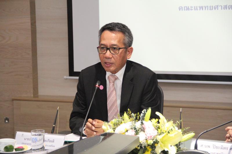 ด้าน ศ. นพ.ปิยะมิตร ศรีธรา คณบดีคณะแพทยศาสตร์โรงพยาบาลรามาธิบดี มหาวิทยาลัยมหิดล กล่าวว่า คณะแพทยศาสตร์โรงพยาบาลรามาธิบดี มหาวิทยาลัยมหิดล มีพันธกิจในการให้บริการรักษาพยาบาล พันธกิจในฐานะโรงเรียนแพทย์ และพันธกิจในด้านการทำวิจัยทางการแพทย์ ซึ่งในกระบวนการทำงานด้านวิจัย ได้มีความร่วมมือกันในการพัฒนาอุปกรณ์และเครื่องมือทางการแพทย์ร่วมกับหน่วยงานและองค์กรต่าง ๆ มาโดยตลอด เพื่อสร้างเป็นนวัตกรรมผลงานสำหรับใช้ในผู้ป่วย ซึ่งคณะแพทยศาสตร์โรงพยาบาลรามาธิบดี มหาวิทยาลัยมหิดล ได้ให้ความสำคัญในเรื่องนี้เป็นอย่างมาก อีกทั้งยังมุ่งมั่นพัฒนาสร้างแพทย์นวัตกรขึ้น เพื่อเพิ่มขีดความสามารถในการสร้างผลงานนวัตกรรมกับองค์ความรู้ทางด้านการแพทย์เข้าด้วยกัน